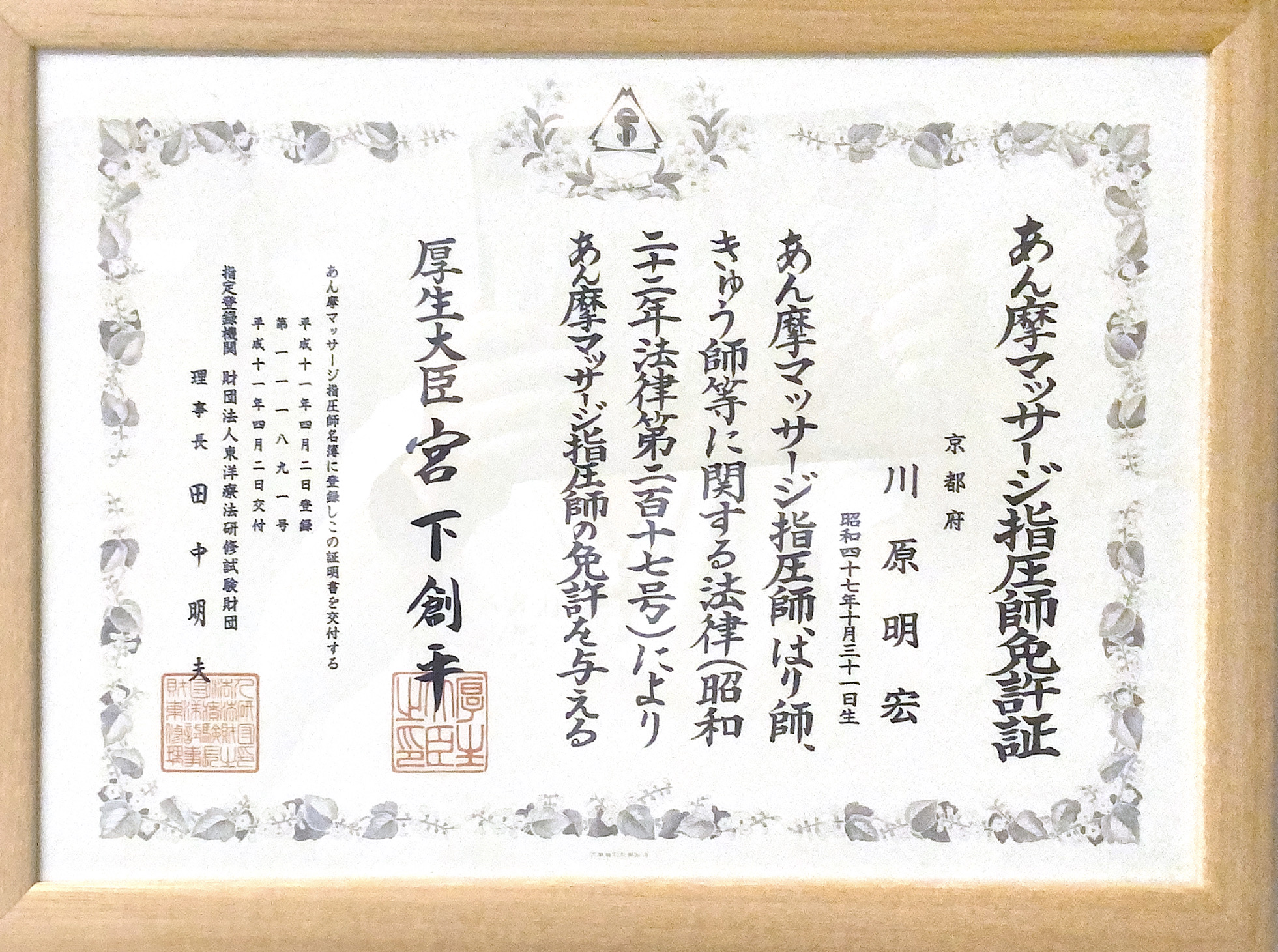 プライベート空間(完全個室)&あん摩マッサージ指圧師免許証取得のーオーナー