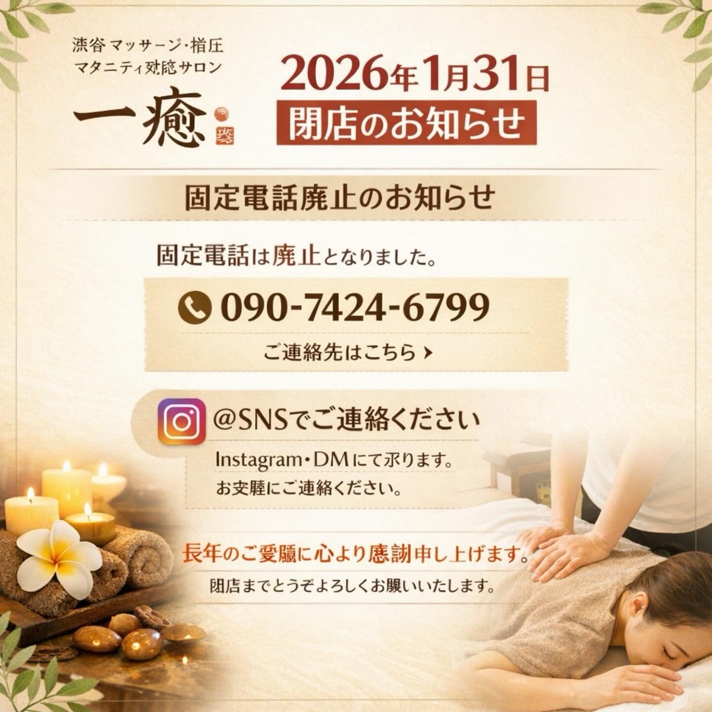 これまで長い間、一癒をご愛顧いただき心より感謝申し上げます。